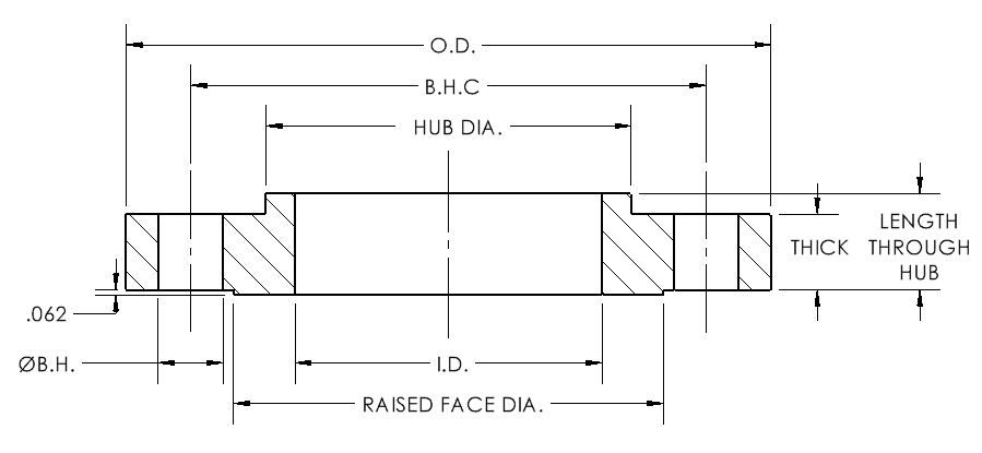 | Bolt Circle Diameter and Bolt Holes (BCD / BH) | Bolt pattern for fastening flanges together | Important for uniform load distribution |