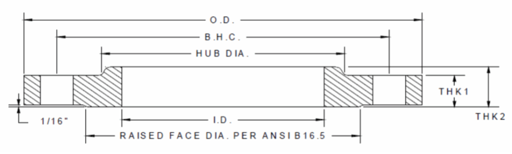 Raised Face Diameter (RFD): The sealing surface area for the gasket.